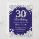30th Birthday Navy Blue and Silver Diamond Invitation