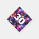 Vibrant neon abstract polygon shapes bursting with explosive sparks on a striking black background for a 30th birthday.