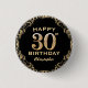 30th Birthday Party Black and Gold Glitter Frame Button. For further customization, please click the "Customize it" button and use our design tool to modify this template.