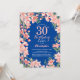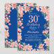 30th Birthday Pink Floral Flowers Blue Invitation