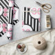 30th birthday pink roses black white stripes name wrapping paper