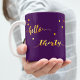 Elegant and modern for a 30th birthday gift. Girly and feminine dark purple backdrop and faux gold text written with a trendy hand-lettered style script: hello thirty. With golden dots as decor.