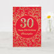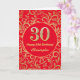 30th Birthday Red and Gold Floral Pattern Birthday Card. For further customization, please click the "Customize it" button and use our design tool to modify this template.