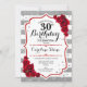 30th Birthday - Red Silver White Stripes Roses Invitation