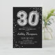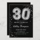 30th Birthday - Silver Balloons Black Invitation