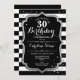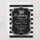 30th Birthday - Silver Black White Stripes Invitation