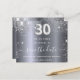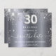 An elegant Save the Date card for a 30th birthday party. A modern faux silver looking background, decorated with faux glitter dust. Personalize and add a date and name/age. The text: Save the Date is written with a large trendy hand lettered style script. Number 30 with a balloon style font.