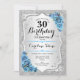 30th Birthday - Silver Stripes Icy Blue Roses Invitation