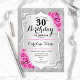 30th Birthday - Silver Stripes Pink Roses Invitation