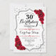 30th Birthday - Silver White Red Roses Invitation