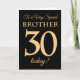 A chic 30th Birthday Card for a 'Very Special Brother', with a number 30 composed of gold-effect numbers and the word 'Brother', in gold-effect, on a black background. The inside message, which you can change if you wish, is 'Happy Birthday'