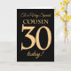 A chic 30th Birthday Card for a 'Very Special Cousin', with a number 30 composed of gold-effect numbers and the word 'Brother', in gold-effect, on a black background. The inside message, which you can change if you wish, is 'Happy Birthday'