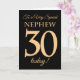 30th Gold-effect on Black for Nephew Birthday Card