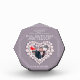 Customize this pearl wedding anniversary photo award with your own 30th anniversary couples photo, year of marriage and names. © Pearl effect beads in a heart art and design by www.mylittleeden.com on zazzle.