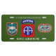 313TH MILITARY INTELLIGENCE BATTALION LICENSE PLATE WITH 82ND AIRBORNE SSI, 313TH FLASH/DUI AND JUMP WINGS/OVAL DESIGN.