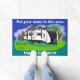 This doormat can be customized to show your name on top. When used outside of your travel trailer, people will know who they are talking to when they see you. Non-slip rubber that won't crack or buckle, this mat resists fading, mold, and mildew and can be easily cleaned with a hose. This version has a trailer similar to a Grand Design Reflection 315rlt trailer. It can be used indoors or out and makes a great welcome mat for your campsite, wherever you may go.