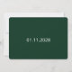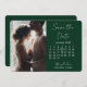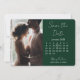 With a forest green and white color theme, this calendar save the date displays a modern, minimalist theme. The back of the card is a forest green with white text for the wedding date reminder.