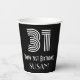 This Roaring Twenties inspired and vintage style birthday themed paper cup design features a large art deco inspired appearance number “31”, along with the birthday greeting message “Happy 31st Birthday,” and a custom name. It also has a black-colored background. Paper cups like this might be used at a birthday party for somebody who is celebrating their 31st birthday. [~Z0000542]