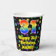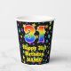 This cheerful and joyful birthday-themed paper cup design features a large number “31” having a rainbow spectrum gradient inspired pattern. It also features the message “Happy 31st Birthday,”, and a customizable name. The background features a vibrant and colorful pattern inspired by a field of stars. Colorful, vibrant paper cups like this might be fun to have at a birthday celebration being held in celebration of somebody’s 31st birthday. [~Z0000540]