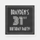 This stylish and 1920s-1930s style inspired thirty-first birthday party paper napkin design features a customizable name, a fancy art deco style inspired number “31st”, the message “BIRTHDAY PARTY!”, and a multi-line border. It has a black-colored background by default, but it can be customized to a different color, if desired. Paper napkins like these might be used when celebrating somebody’s thirty first birthday. [~Z0000616]
