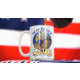 This custom 2-sided 322 TRS Eagles mascot Air Force BMT (basic military training) graduation coffee mug, shown here in the 15 oz. size, is the perfect gift for the Air Force Mom, Dad, family member, or soon-to-be Airman graduate in training / boot camp at Lackland! ♥ Designed by an Air Force Mom ♥ **Royal Blue is the official color of the 322 Eagles Training Squadron. Mug template can be easily personalized with trainee's last name, 322 TRS / FLT ###, funny mascot muscle heart tattoo name (please try to keep to 3 letters) on both sides, and graduation date down the center. Custom design requests & questions are always welcome, - and if you would like to know where to get the Airman photo necklace shown in the photo, email: contact@figandlilyco.com. Check out all my invitations, basic training cards, graduation cards / t-shirts / vinyl banners all personalized with TRS mascots, to help Air Force wing families like ours get through the long 7.5 weeks of BMT, graduation week, tech school, and beyond. We send our sincere blessings and HUGE thanks for the service, courage, and sacrifice of your US Airman!