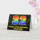 This happy, colorful, and vibrant birthday greeting card design features a large number "32" with a rainbow spectrum gradient inspired pattern, along with the message "Happy 32nd Birthday,", and a custom recipient name. The front also features a pattern of various music notes and symbols having a variety of colors and sizes. The inside features a customized birthday greeting message, or could perhaps be cleared and left blank if a message is to be written by hand instead. A customizable birthday greeting card like this might be a fun way to deliver a birthday greeting message to a musician, a music composer, a singer, or somebody else who is celebrating their thirty-second birthday. [~Z0000426]