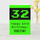 32nd Birthday: Nerdy / Geeky Style "32" and Name Card