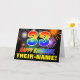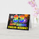 The front of this fun, colorful, and cheerful birthday themed greeting card design features a large number "33" and the message "HAPPY BIRTHDAY,", both colored with a rainbow spectrum gradient inspired pattern, along with a bold yellow custom recipient name. The front also has a multicolored background pattern inspired by the look of bursting celebratory fireworks. The inside features an editable birthday greeting message, or could perhaps be cleared and left blank if a message is to be written by hand instead. An exciting personalized birthday card like this might be a fun way of acknowledging somebody’s thirty third birthday. [~Z0000471]