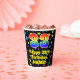 This exciting and fun birthday themed paper cup design features a large number “33” with a rainbow spectrum gradient inspired pattern, along with the message “Happy 33rd Birthday,”, and a personalized name. The background features a vibrant and colorful pattern having many star shapes with different sizes and colors. Vibrant, colorful paper cups like this might be fun to have at a birthday party/celebration being held to celebrate somebody’s thirty third birthday. [~Z0000540]