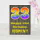 33rd Birthday: Rustic Faux Wood Look, Rainbow "33" Card