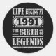 34 Year Old 1991 Birth Of Legend 34th Birthday Classic Round Sticker