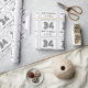 This vintage look and 1920s/1930s style inspired birthday-themed wrapping paper design features a large Art Deco style inspired number "34", the message "Happy 34th Birthday,", a personalized name, and a border pattern consisting of lines. Wrapping paper like this might be a fun way of wrapping a birthday present or gift being given to somebody who is celebrating their 34th birthday. [~Z0000391]