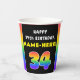 This joyful and upbeat birthday-themed paper cup design features a big number “34“ with a vibrant rainbow spectrum inspired gradient pattern, along with the message “HAPPY 34th BIRTHDAY,”, and a personalized recipient name. Birthday themed paper cups like this might be a fun way to celebrate somebody’s 34th birthday. [~Z0000639]