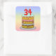 34th Birthday: Fun Cake and Candles + Custom Name Square Sticker