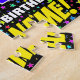 This vibrant and upbeat birthday jigsaw puzzle design features a large number “34” with a multicolored rainbow spectrum inspired gradient pattern, along with the message “HAPPY 34th BIRTHDAY,”, and a personalized recipient name. The background has a fun, colorful star shapes pattern. A colorful, customizable birthday puzzle like this might be used to celebrate somebody’s thirty-fourth birthday. [~Z0000607]