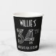 This stylish 1920s/1930s era inspired art deco style birthday paper cup design has an editable name, along with the message “34TH BIRTHDAY PARTY!”. The number “34TH” has a fancy geometric lined appearance. Birthday themed paper cups like these might be used at a party celebrating somebody’s thirty-fourth birthday, or some other 34th event. [~Z0000658]