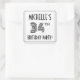 This stylish thirty-fourth birthday celebration/party square sticker design features a customizable name, a fancy art deco look inspired number “34th”, the message “BIRTHDAY PARTY!”, and a multi-line border. Stickers like these might be used when celebrating somebody’s 34th birthday. [~Z0000618]