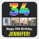 34th Birthday: Rainbow “34”; Custom Photos & Name Square Sticker