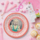 35 Your Photo Random Number Pattern Coral/White Paper Plates