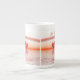 Beverage mug with my image of two coral colored hearts floating on the water under a rainbow. Text says "35 Years".