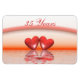 Magnet with my original design of two coral colored hearts floating on the water under a rainbow. Customizable text says "35 Years".