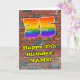 This fun and exciting urban graffiti and street art inspired birthday greeting card design features a large number “35” with a colorful rainbow spectrum gradient inspired pattern, along with the message “Happy 35th Birthday,”, and a customizable name. The background of the front features a brick wall pattern. The inside features a custom birthday greeting message, or could perhaps be cleared and left blank if a message is to be written by hand instead. A vibrant, customizable birthday greeting card like this might be a fun way to send some birthday wishes to somebody who is celebrating their thirty-fifth birthday. [~Z0000586]