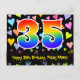 The front of this loving, exciting, and colorful birthday postcard design features a large number "35" having a rainbow spectrum gradient inspired pattern. It also features the message "Happy 35th Birthday,", and an editable recipient name. The front additionally has a colorful and vibrant background pattern featuring loving hearts of different sizes. The back features a customizable birthday greeting message, or could perhaps be cleared and left blank if a message is to be written by hand instead. A customizable birthday postcard like this might be a fun way to acknowledge somebody’s thirty fifth birthday. Postcards like this might also be used to invite guests to a birthday party or celebration being held for somebody who is turning 35 years old. [~Z0000448]