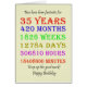 35th birthday card counting down the years, days, months, hours, and minutes. A card to give pause for thought! Leap years have been taken into account!