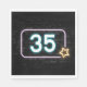 Glowing neon sign with a star on a dark brick city wall for 35th birthday party.