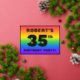 The front of this eye-catching and exciting thirty-fifth birthday party/celebration foil invitation card design features a personalized name, a large number “35th”, the message “BIRTHDAY PARTY!”, and a border. The background of the front has an upbeat, multicolored, rainbow spectrum inspired gradient pattern. The back features personalized details about the event, such as the date, time, place, and any other information that may be relevant. Customized invitations like these might be a fun way to invite attendees to a birthday party being held to honor somebody’s 35th birthday. [~Z0000599]