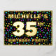 The front of this fun and vibrant thirty-fifth birthday celebration/party foil invitation card design features a customizable name, a large number “35th”, the message “BIRTHDAY PARTY!”, and a border. The background of the front has an upbeat, multicolored starfield pattern. The back features personalized details about the event, such as the date, time, venue, and any other important information. Personalized invitations like these might be a fun way to invite guests/attendees to a birthday gathering/party being held to celebrate somebody’s 35th birthday. [~Z0000600]