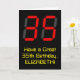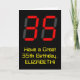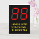 The front of this silly and fun birthday-themed greeting card design features a large number "35" having a red seven segment digital display inspired appearance, along with the message "Have a Great 35th Birthday," and a personalized name, on a black colored background. The inside features a customized birthday greeting message, or could perhaps be cleared and left blank if a message is to be written by hand instead. A customizable birthday card like this might be a fun way to acknowledge somebody’s thirty fifth birthday. [~Z0000386]