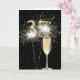 Party sparklers with gold confetti and white wine in stemware on black for 35th birthday.