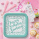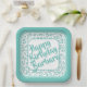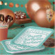 This numeric design has a teal and white random number pattern with a teal milestone number 35 repeated in varied sizes and angles. There is a white area in the center for your text and teal-and-white squares around the rim.